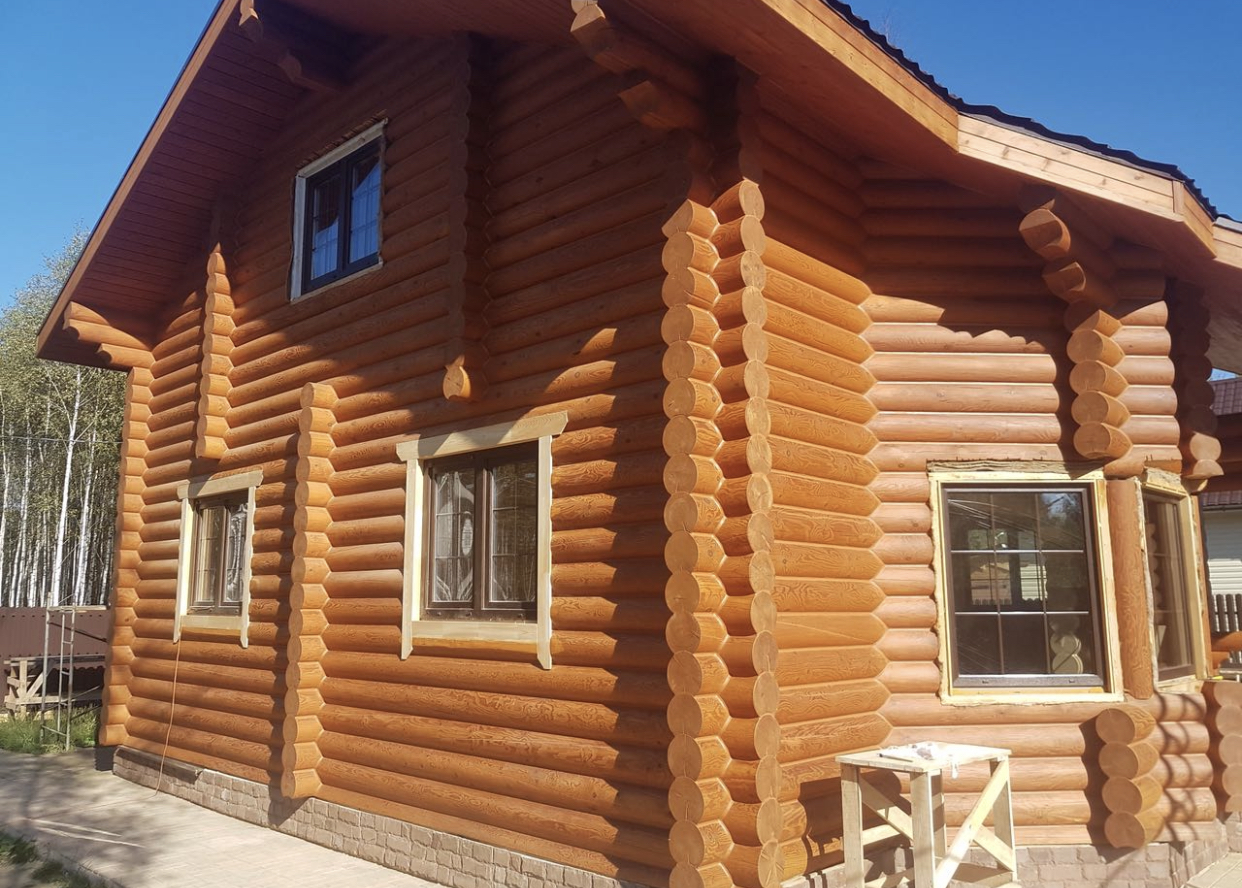 Фасадное масло м кварцем, цвет орех. Шлифовка 120 зерном, 2 слоя. Предварительное антисептирование без грунтования