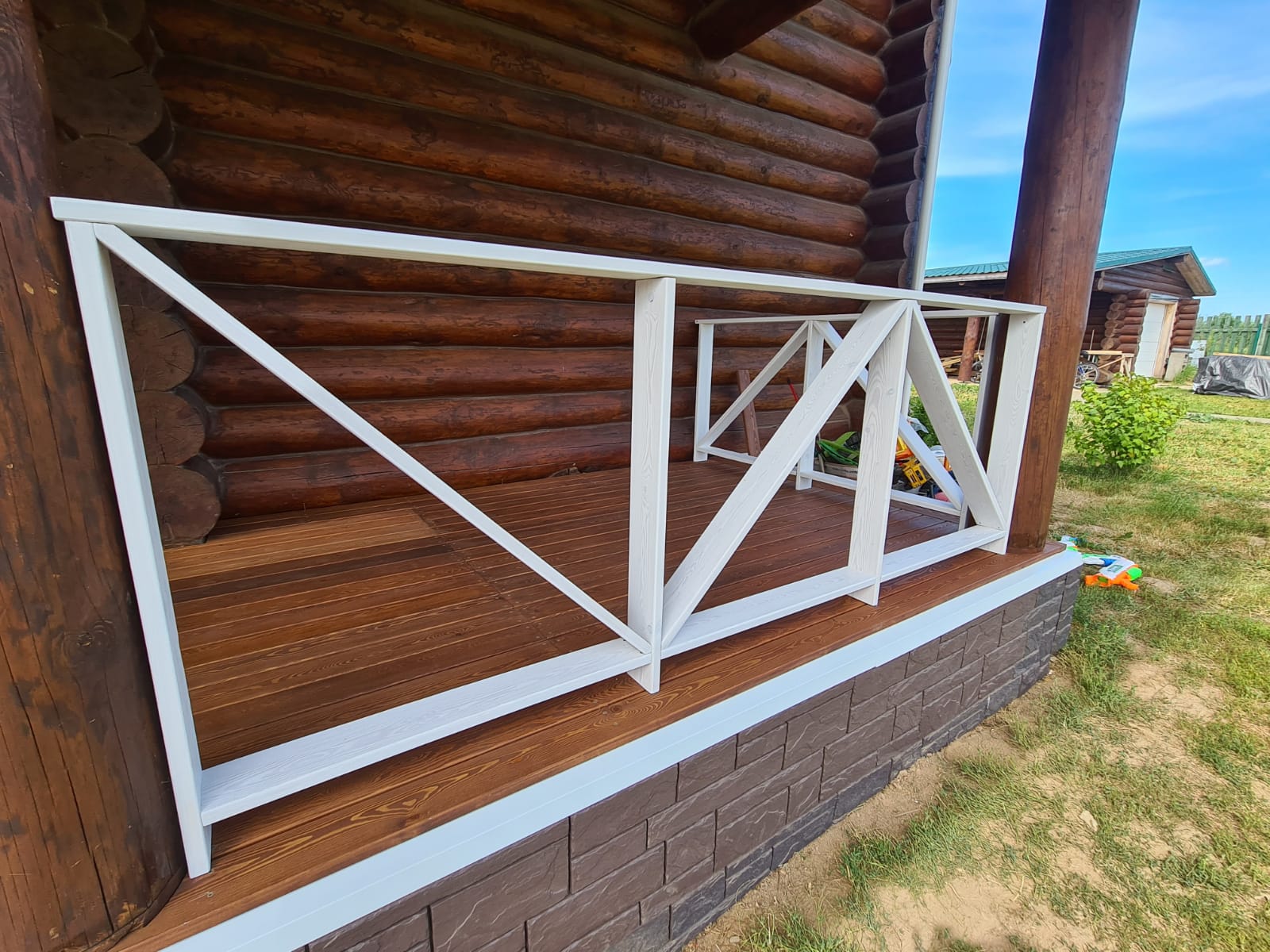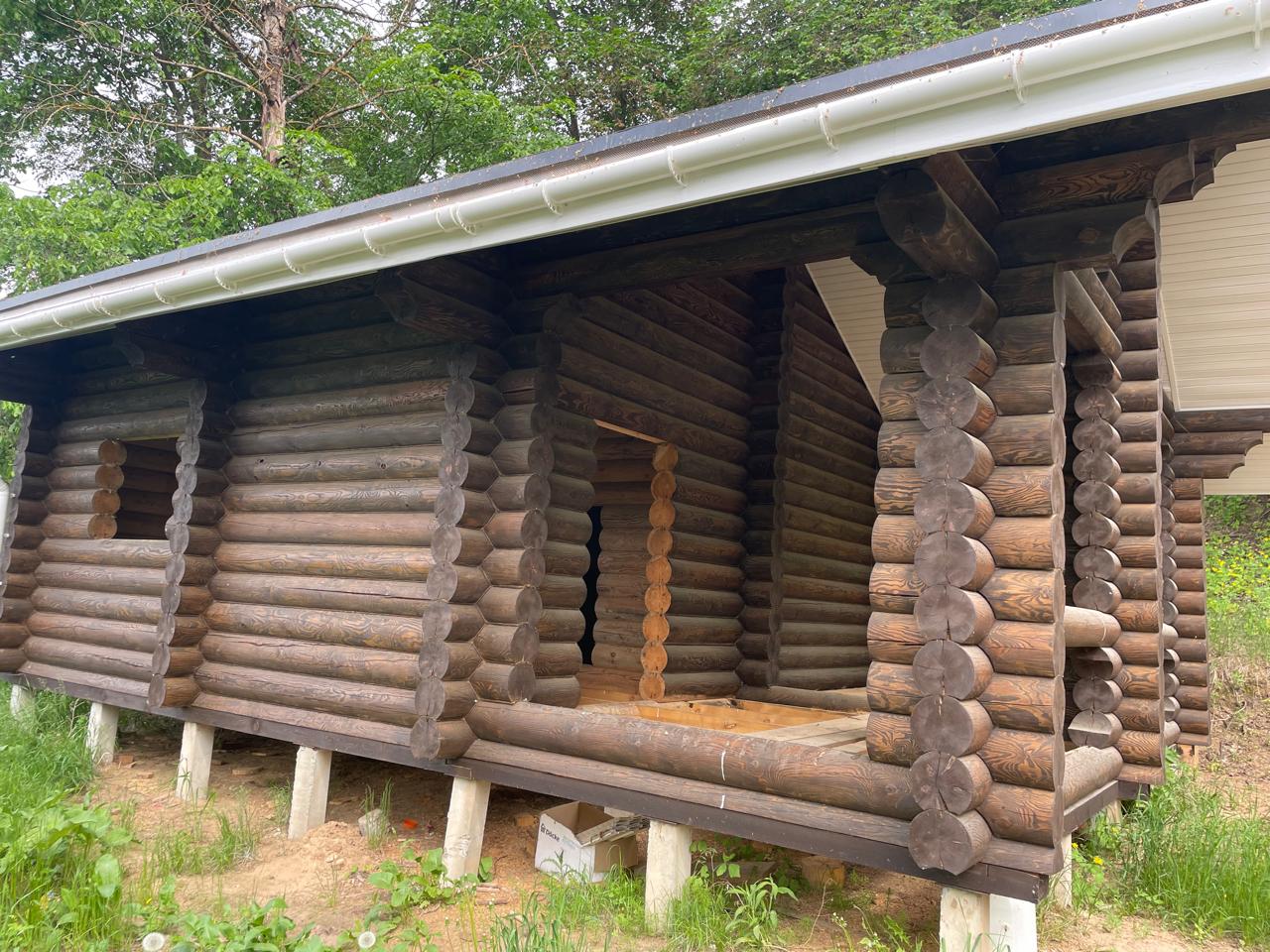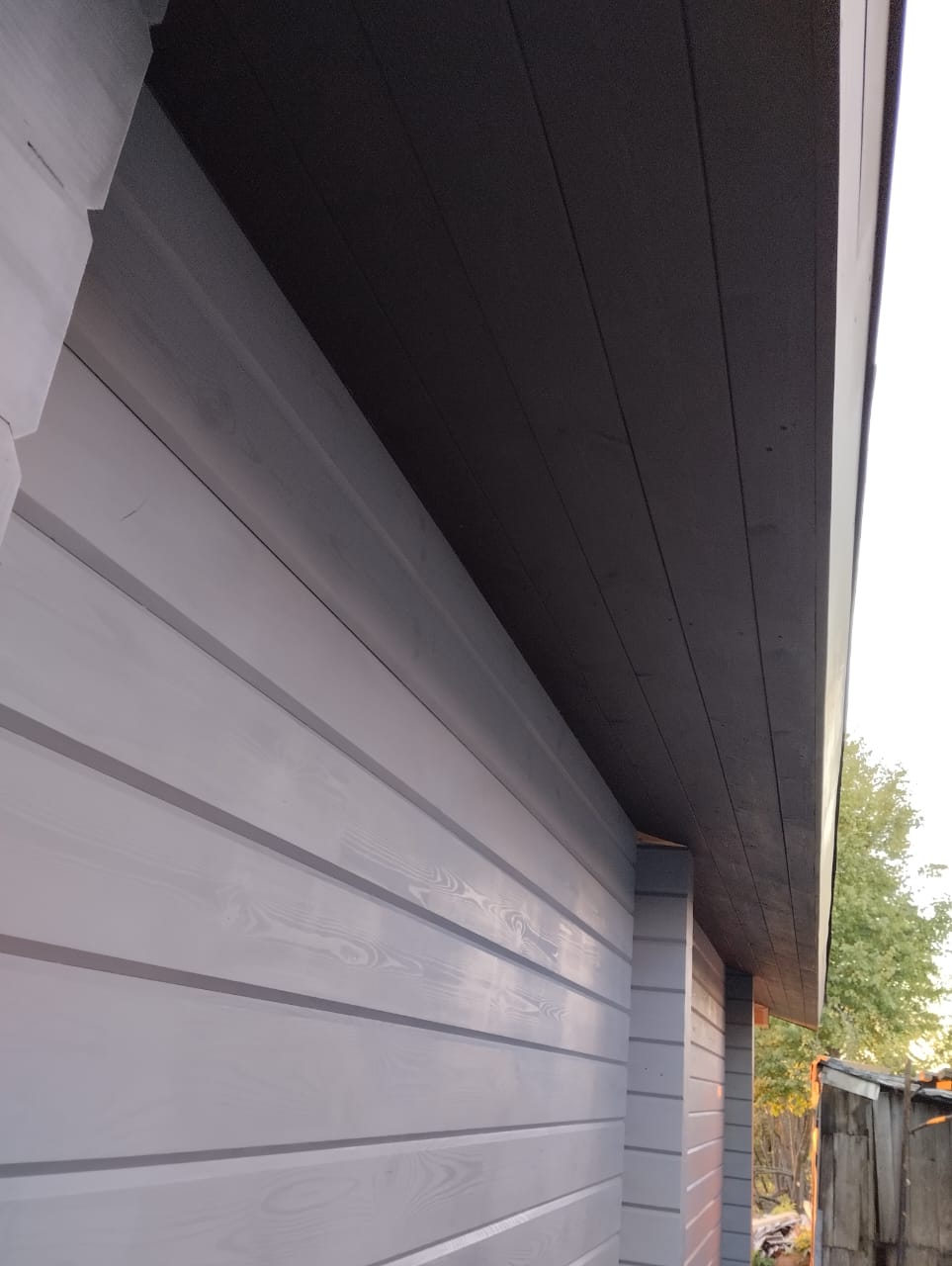 Масло фасадное с кварцем, нанесено в 1 слой с предварительным нанесением антисептика на поверхность древесины